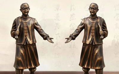 以玻璃鋼仿銅工藝塑造母子洗腳場景,通過褶皺衣紋、溫潤神態與仿銅肌理傳遞孝道溫度。內置鋼筋龍骨確保結構穩定,做舊工藝還原青銅包漿質感,適用于社區廣場、家風教育基地、養老機構等場所,用凝固的溫情喚醒代際情感共鳴。